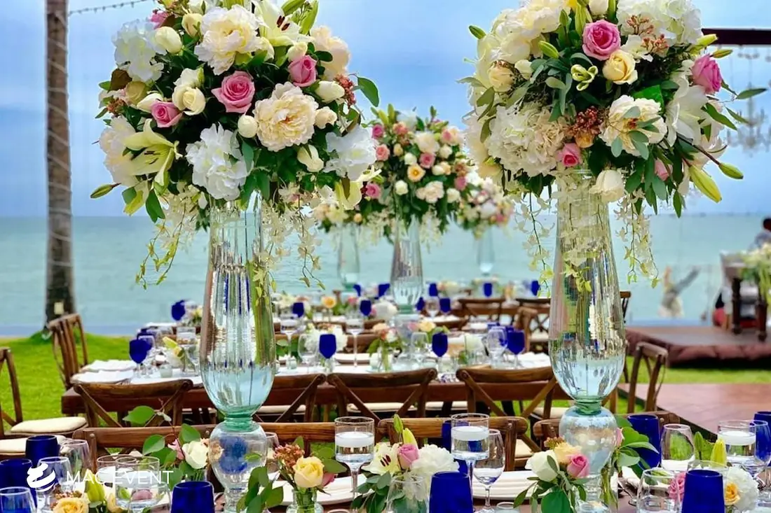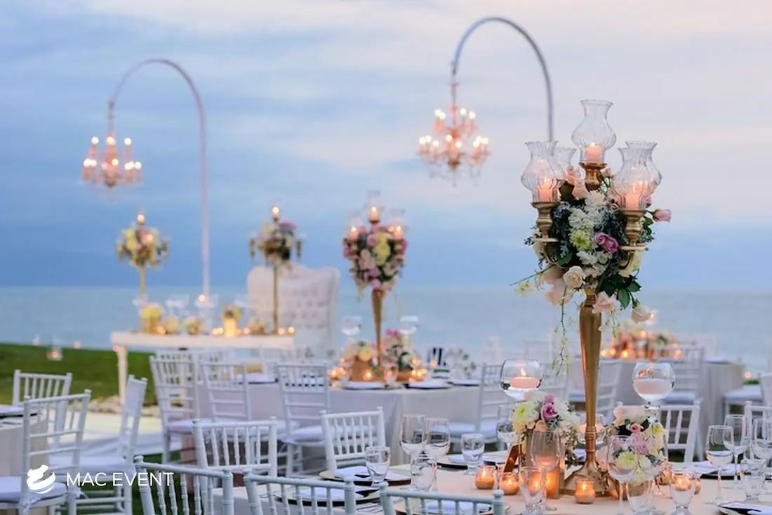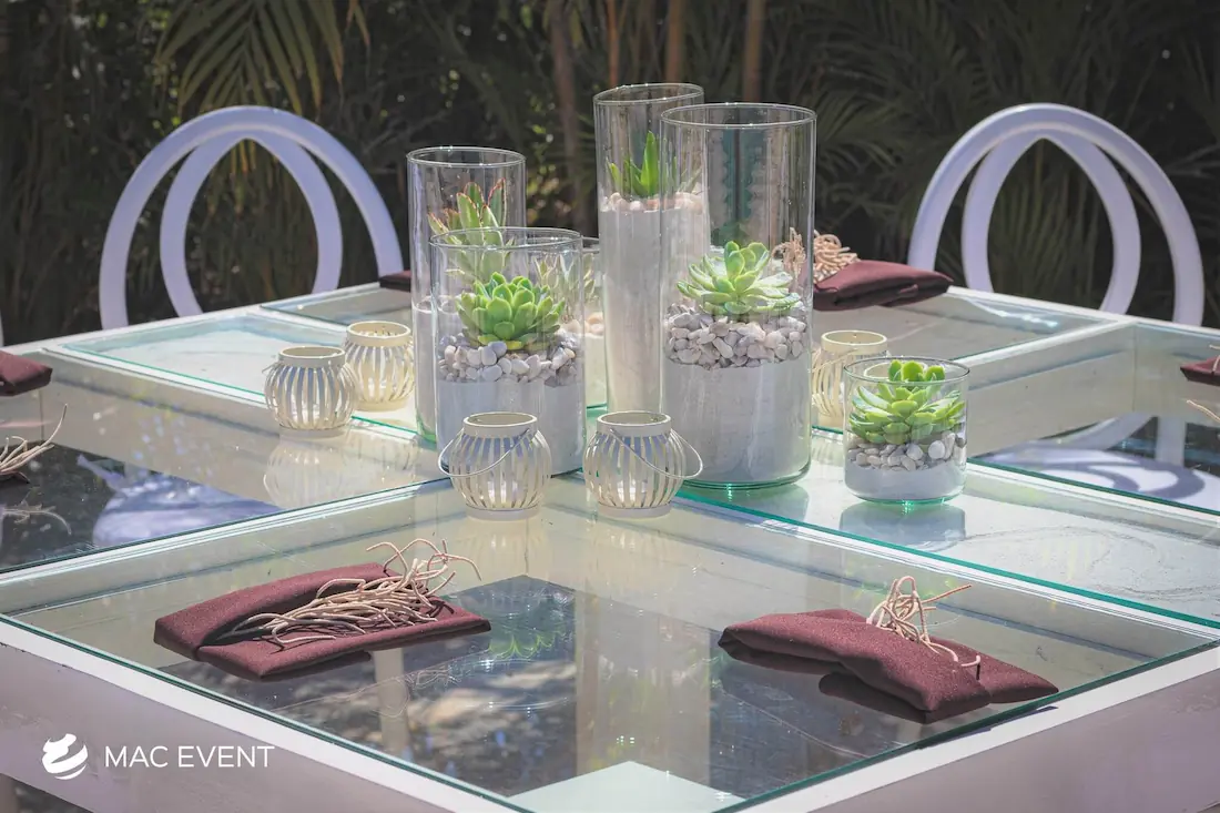 The banquet table centerpiece adds elegance and harmony to long table setups at weddings, parties, and corporate events in Litibu. Designed to complement extended dining arrangements, this event décor rental enhances the flow and visual balance of your space. Whether styled with lush greenery, candles, or floral arrangements, the banquet table centerpiece creates a warm and sophisticated atmosphere that encourages conversation and connection. Renting banquet table centerpieces in Litibu ensures a coordinated and polished presentation that perfectly matches your event theme. For a refined and inviting dining experience, this centerpiece is an ideal finishing touch.