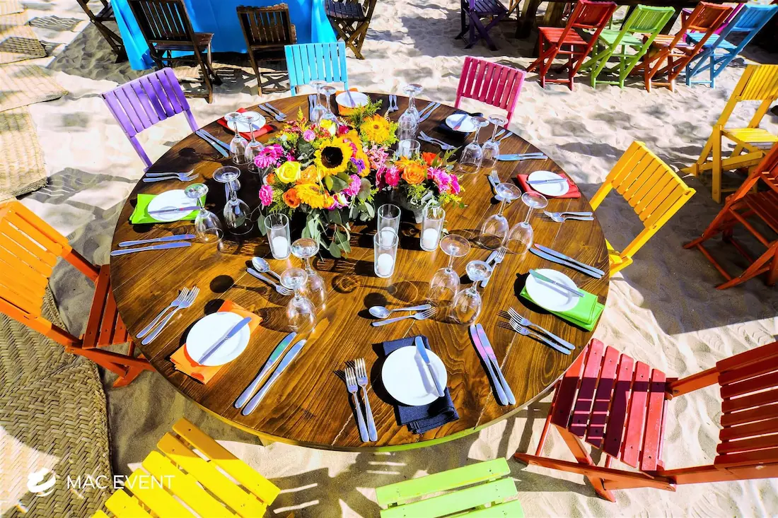 The round rustic table is perfect for weddings, outdoor parties, and elegant gatherings in Litibu. Its natural wood finish and handcrafted charm create a warm, inviting atmosphere that pairs beautifully with beach, garden, or boho-inspired themes. This event table rental combines style and durability, offering plenty of space for décor, dining, or floral arrangements. Renting round rustic tables in Litibu adds texture and authenticity to your setup while maintaining comfort and visual harmony. For those who want a touch of natural elegance, the round rustic table is an ideal choice to enhance any celebration.