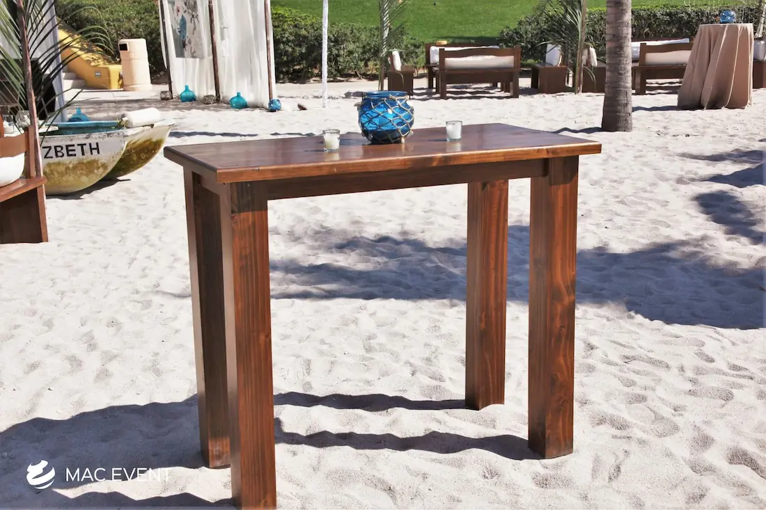 The rustic cocktail table brings natural warmth and charm to weddings, beach parties, and corporate events in Litibu. Crafted with a wood finish and simple design, this event table rental blends perfectly with boho, tropical, or countryside themes. Ideal for outdoor lounges, cocktail hours, or relaxed receptions, the rustic cocktail table creates an inviting space where guests can gather and enjoy the atmosphere. Renting rustic cocktail tables in Litibu allows you to add character and elegance to your setup while maintaining a cohesive, natural look. For a stylish yet laid-back vibe, this table is an excellent choice for any event.